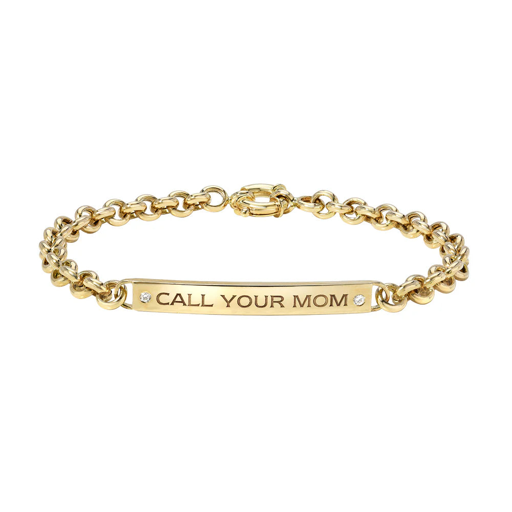 The bar of this bracelet measures 42 mm long and 5 mm wide.  The chain is a hollow 5 mm rolo chain. The total length of the chain is 7."