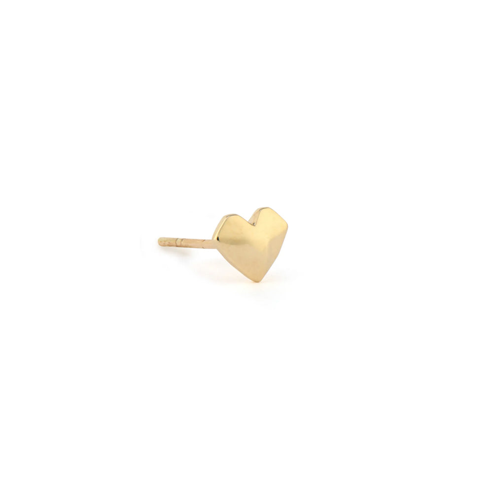 Three Stories Jewelry Heart Shape Stud Earring is made from 14k yellow gold with an engraved detail.