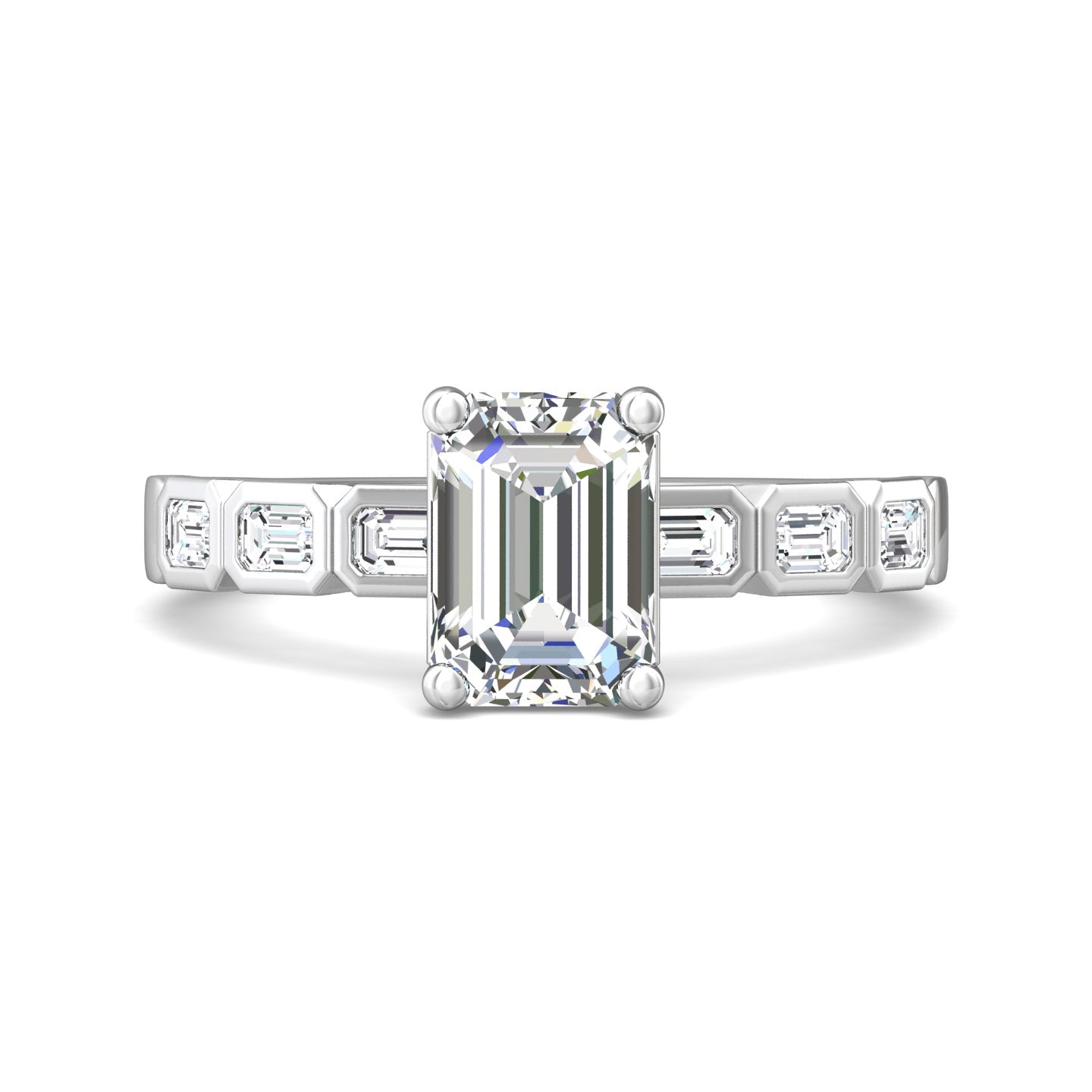 - 6 Bezel Set Lab Grown Emerald Cut Diamonds: .52 total diamond carat weight