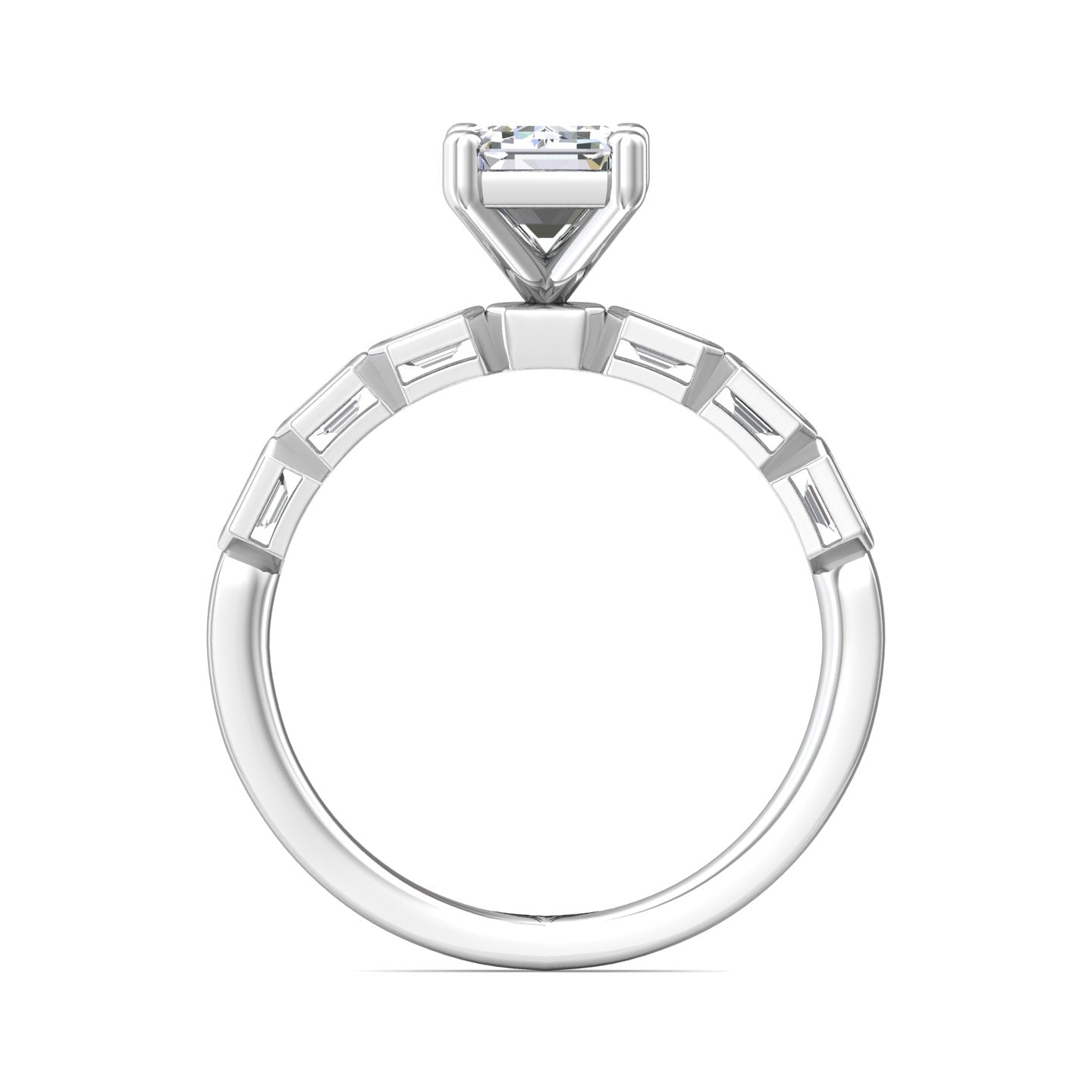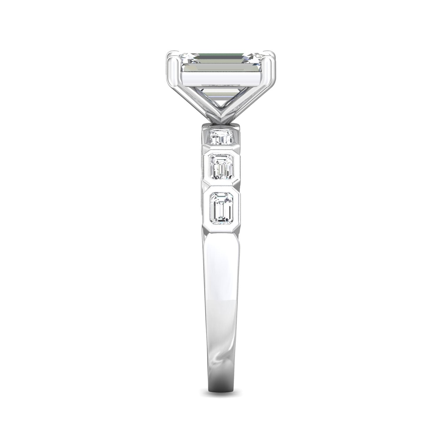 Martin Flyer 14k White Gold Lab Grown Emerald Cut Diamond Engagement Ring with Bezel Set Diamond Sides