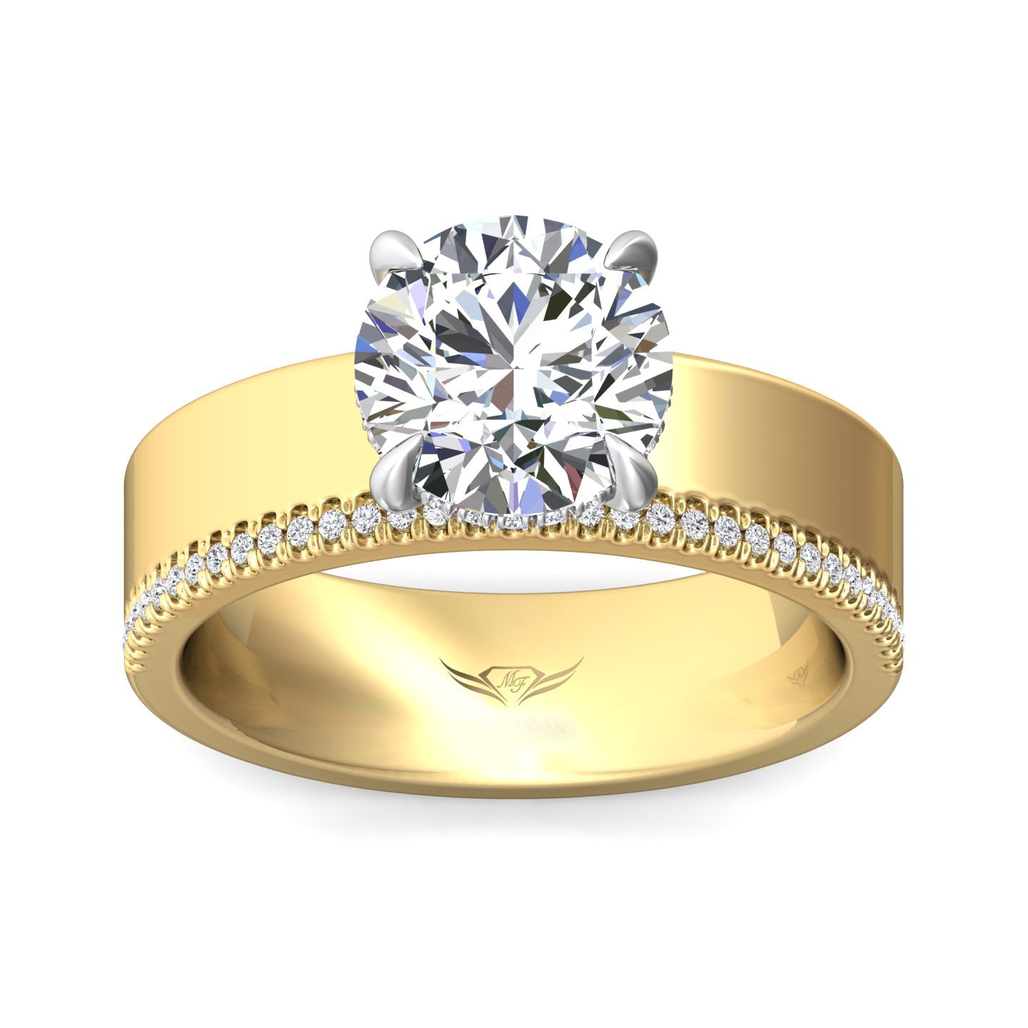 Martin Flyer 14k Yellow Gold Wide Solitaire Engagement Ring Setting with Partial Diamond Inset and Hidden Halo